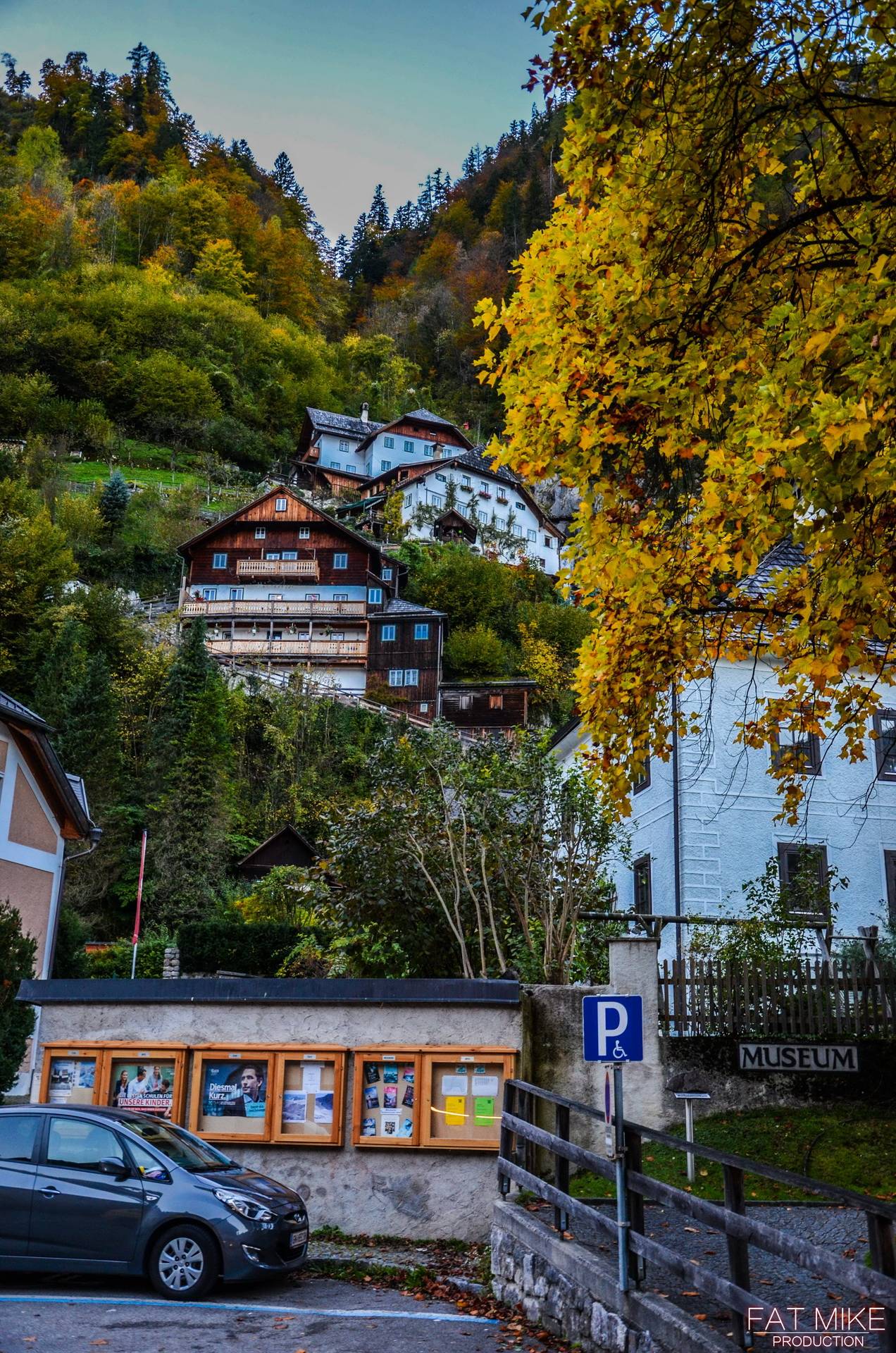 小镇不大,房屋密度却非常高,我们的酒店(Heritage Hotel Hallstatt)位于中心地段,所以停车就成了一个问题。所有来哈尔施塔特的车辆都可以停在中心城区之外的几个停车场,然后步行至镇中心。停车场一共有三个,其中P1还会有免费的短驳巴士来往于停车场和镇中心的各个酒店,推荐大家可以选择P1。短驳巴士每逢整点和半点都有班次。