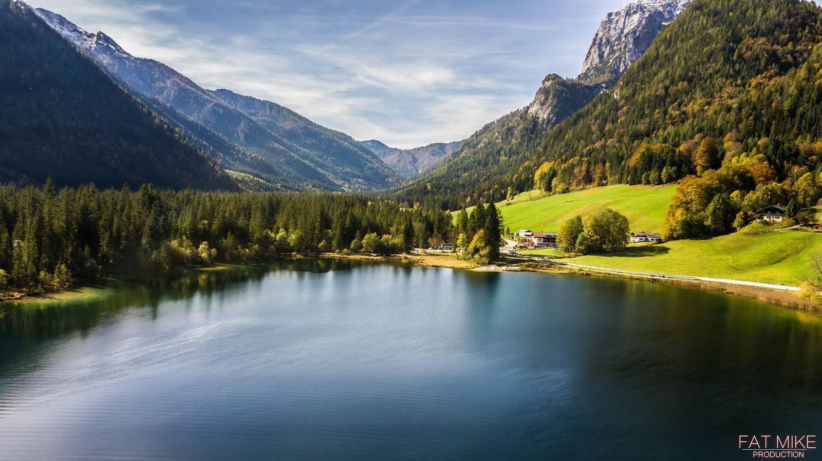 拉姆绍的第二天早上,阳光明媚,非常适合拍摄,于是赶紧吃了早饭,让无人机起飞。这一座在山丘中间的小镇一览无余,一条小溪更是穿镇而过,著名的魔法森林就坐落于此。 再往前一点就是后湖,这里有很多可以登山的步道,景色也是非常美。